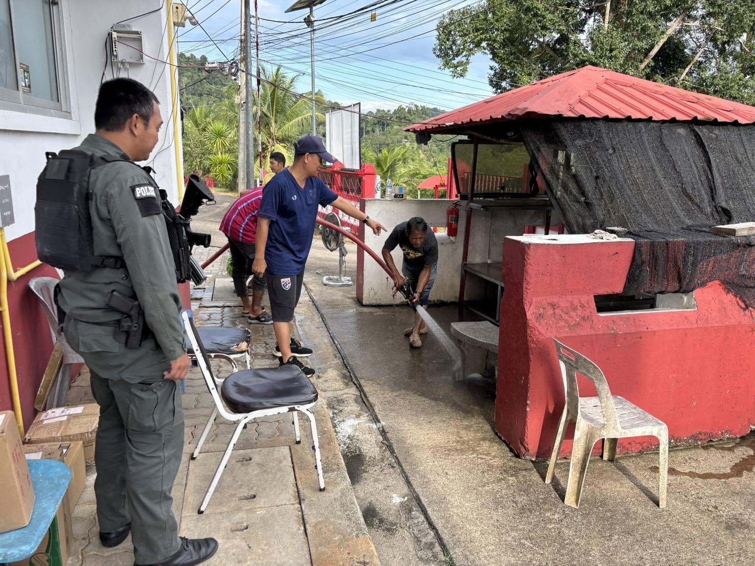 5 ส. ทำความสะอาด 15 ตุลาคม 2568 โดย admin / ผลการปฏิบัติงานของแต่ละสายงาน,ผลการปฏิบัติงานของสายงานอำนวยการ,อำนวยการ ตุลาคม 2568 วันที่ 15 ต.ค. 68 เวลา 15.00 น. ภายใต้การอำนวยการของพ.ต.อ. ปิยวุฒิ พงศ์ไพบูลย์ ผกก.สภ.ธารโต จว.ยะลา มอบหมายให้ข้าราชการตำรวจในสังกัด ร่วมลงแถวดำเนินกิจกรรม 5 ส. ทำความสะอาดและพัฒนาที่ตั้งของหน่วย