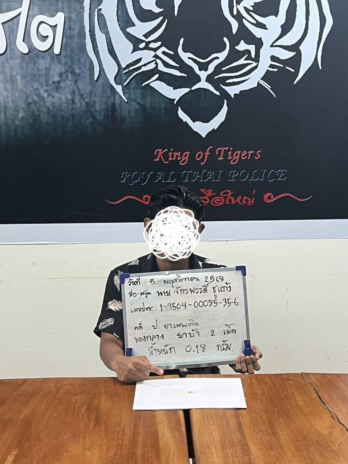 ยาเสพติดให้โทษประเภทที่ 1 (ยาบ้า) จำนวน 2 เม็ด น้ำหนักประมาณ 0.18 กรัม